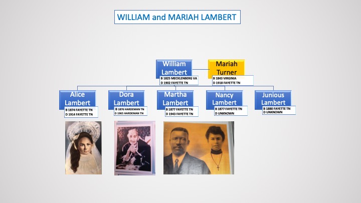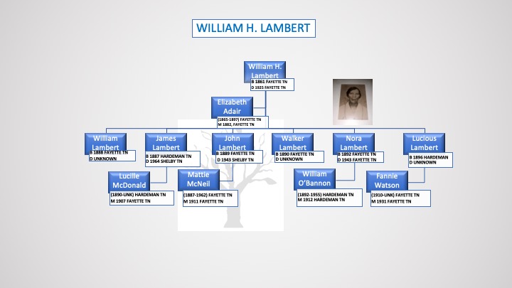 This is a slide show of the William and Mariah Lambert Family Tree. The tree details two generations of their descendants and their spouses.