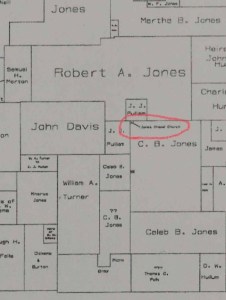 Caleb Baker Jones, son of John Walker Jones who established the Cedar Grove Plantation in 1826, deeded 1 acre of his land to his workers for purposes of erecting the church, school and cemetery. A review of Fayette County land records in 1880 show the small parcel of Caleb’s property as owned by the Jones Chapel Church (diagram below). The handwritten deed, dated November 2, 1872, recording the donation of one acre of land in District 13, Fayette County, Tennessee, by Caleb Baker Jones to Christopher (Kit) Thompson and Washington Brown as Trustees “for the Colored people of this neighborhood” … “to build and establish a church and schoolhouse for them and upon which is now erected a building known and called Jones Chapel situated about four miles north of La Grange…” Caleb was a Confederate soldier during the Civil War (pictured below in Confederate uniform). According to census records, he owned several hundred acres of farm land and 33 slaves prior to the war. One wonders about his motivation for giving the land to his field “workers”. One (1) acre of land was not much to him and his family but still…
